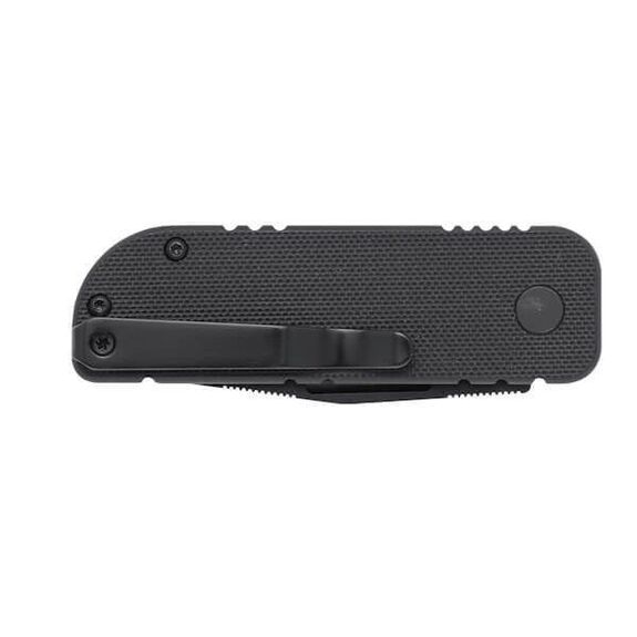 Glatte, clippointförmige Klinge aus 6 cm langem, rostfreiem D2(HRC 59-61)-Stahl mit schwarzer PTFE-Beschichtung.