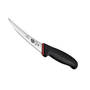Dual Grip boning knife, 15 or 12 cm stainless steel blade, inverted back, bi-material handle (red polypropylene core, black thermoplastic elastomer grip). This range is ideal for professional butchers who use their utensils intensively.
